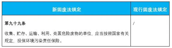 3.新增了收集、貯存、運(yùn)輸、利用、處置危險(xiǎn)廢物的單位,應(yīng)當(dāng)投保環(huán)境污染責(zé)任保險(xiǎn)的要求