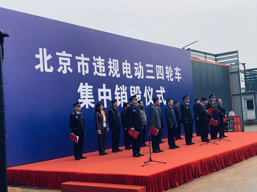 北京1569輛違規(guī)電動(dòng)三四輪車在華新凱業(yè)現(xiàn)場(chǎng)被集中銷毀!
